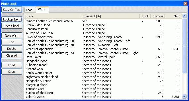 EQ Pixieis a program that runs alongside EQ, staying in the background most of the time, although any of its windows can be set to stay on top of EQ if you wish. Pixie keeps track of a variety of things in the game, like loot and dps. It can notify you of important events. Most importantly, EQ Pixie contains a lot of tools to help make your gaming more fun.For a complete list of all of Pixie's tools, with detailed descriptions, please see the Manual. Below are screenshots and descriptions of a few of Pixie's features, but this list is far from complete. DPS Table